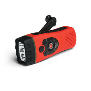 Multifunktionale Dynamo-Taschenlampe welche nicht auf Batterien angewiesen ist. Zusätzlich bietet Sie 3 Blinklichter, eine Alarmfunktion, ein FM Radio und einen USB Adapter zum aufladen des Handys.